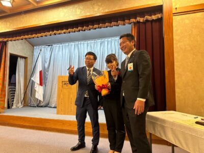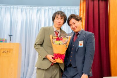その後先輩たちから記念品をいただき、次年度理事長予定者の有賀大輔君から送辞が送られました。