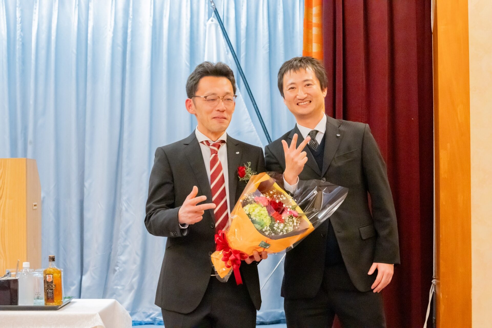 その後先輩たちから記念品をいただき、次年度理事長予定者の有賀大輔君から送辞が送られました。