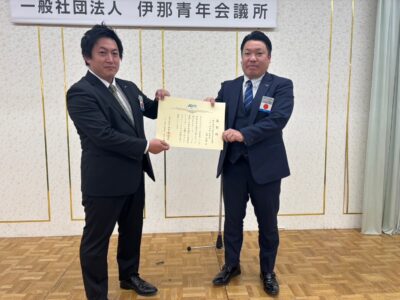 本年も伊那JCメンバー一同、地域のために成長し、明るく豊かな社会実現のために全力で活動して参ります。