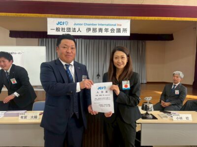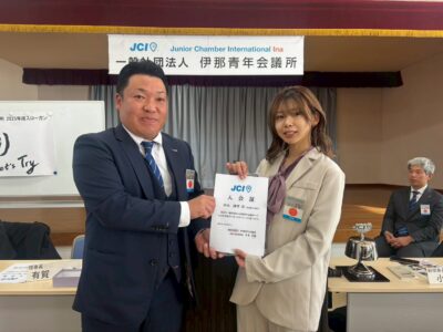 2025年度 12月例会が開催されました。 公開日: 2025年12月08日 カテゴリー: お知らせ, 活動報告 12月6日(土)伊那商工会館イベントホールで12月例会が開催されました。 有賀理事長挨拶 新しいメンバーである 今村 摩衣君 中山 深雪君 入会証とネーム・バッジが渡りました。 新しい力と共に頑張っていきますので、皆さん応援よろしくお願いします! 1年間ありがとうございました。 来年度も引き続き伊那青年会議所を宜しくお願い致します。 Tweet